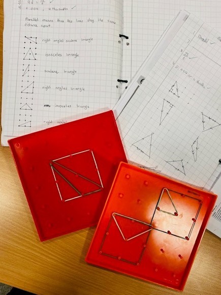 Last week, Year 7 were investigating types of triangles in their Math lesson with Miss Robinson. Here's a question for you - how many different triangles do you think you could find using a 3 x 3 geoboard?