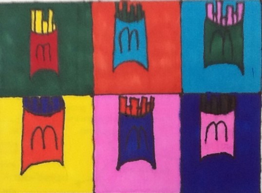Last week year 9 explored the works and styles of pop artists Roy Lichtenstein and Andy Warhol to create their own pop art food artwork using a range of art media and techniques.