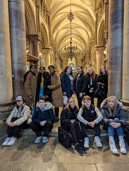 Posted on: 28th Mar 2023For over a thousand years, Canterbury Cathedral has been a place of significant pilgrimage. Pilgrims have journeyed to Canterbury along numerous pilgrim paths which crisscross the Weald and Down as they head east. Today 20 of St Augustine Academy’s students made the journey from Maidstone East Station. They got a glimpse of the Cathedral from the train. They then entered the Cathedral city through the West Gate and walked up the cobbled streets, past Chaucer’s statue, and down the narrow lane to the Cathedral Gate which has recently been restored. Students entered the Cathedral and looked up at the marvellous ceiling. They got to see tombs of Arch Bishop’s past, wander through the stunning Cloisters, stop at the site Thomas Becket was slain and take a little break. Students then entered the crypt, where they got the opportunity to light a candle, or ask for a prayer to be said. They discovered a hidden side chapel where the oldest Christian pictures in the country are painted on the walls and ceilings.