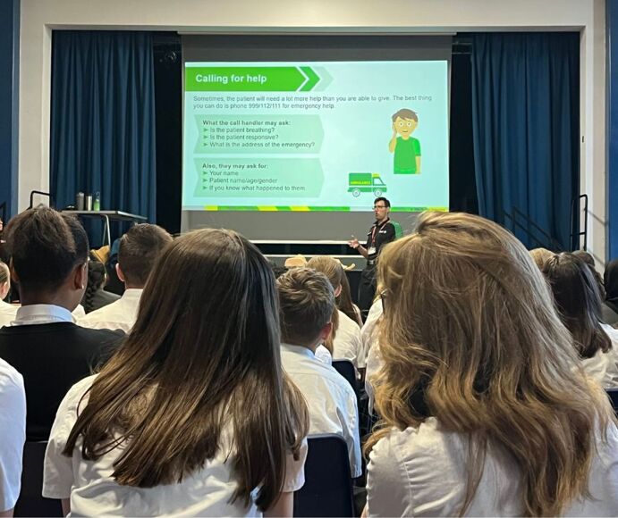 Posted on: 1st Jul 2025On Thursday 19th June students in Years 7 & 8, and those involved in the Duke of Edinburgh Award, received a special visit from our friends at St John Ambulance. The informative trainers spoke about the history of the organisation and went through lots of simple first aid tips and tricks. After receiving a crash-course in CPR (featuring a mass singalong of "I would walk 500 miles") it was time for everyone to get stuck in! Students rotated around three interactive 'stations' where they had a go at performing CPR on an adult, a child and a baby.